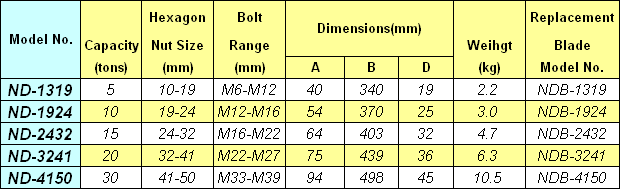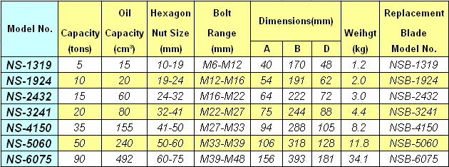 l Compact and ergonomic design, easy to use. l Single-acting, spring return cylinder l All nut splitter are supplied with female coupler l Replacement blade are readily available.